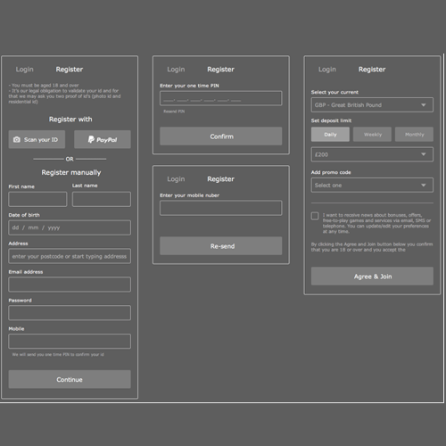 This project is to improve the experience of registration to first deposit. The objective is to get user on board and play as fast a possible. We have analysed there are high percentage of drop off at registration step 1 & 2. Legally we need to capture some details where users are quite not comfortable to share.